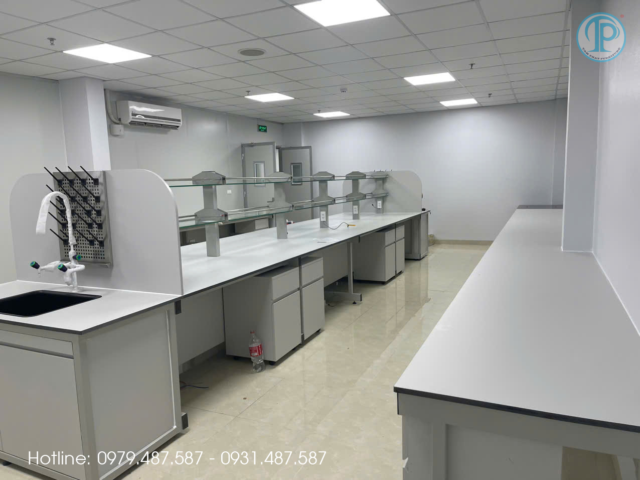 – Mặt bàn làm bằng tấm Phenolic HPL – Wilsonart Protector chuyên dụng cho phòng thí nghiệm, màu ghi hoặc màu đen.
